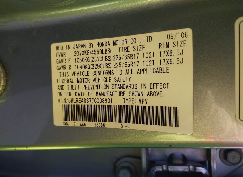 - Название лота: 2007 HONDA CR-V LX