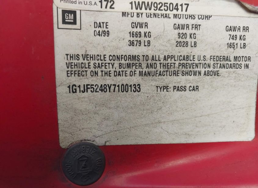 - VIN: 1G1JF5248Y7100133