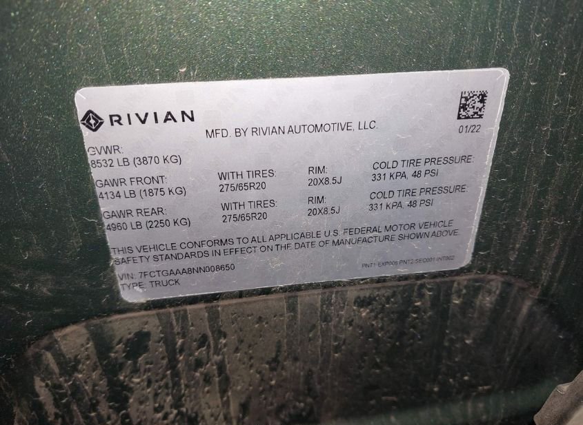 - Название лота: 2022 RIVIAN R1T ADVENTURE