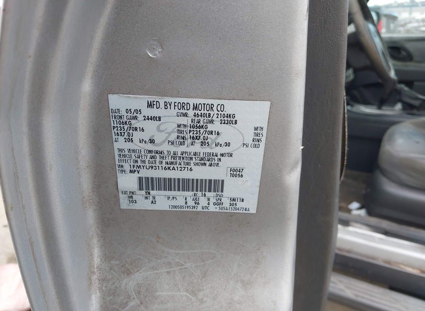 - VIN: 1FMYU93116KA12716