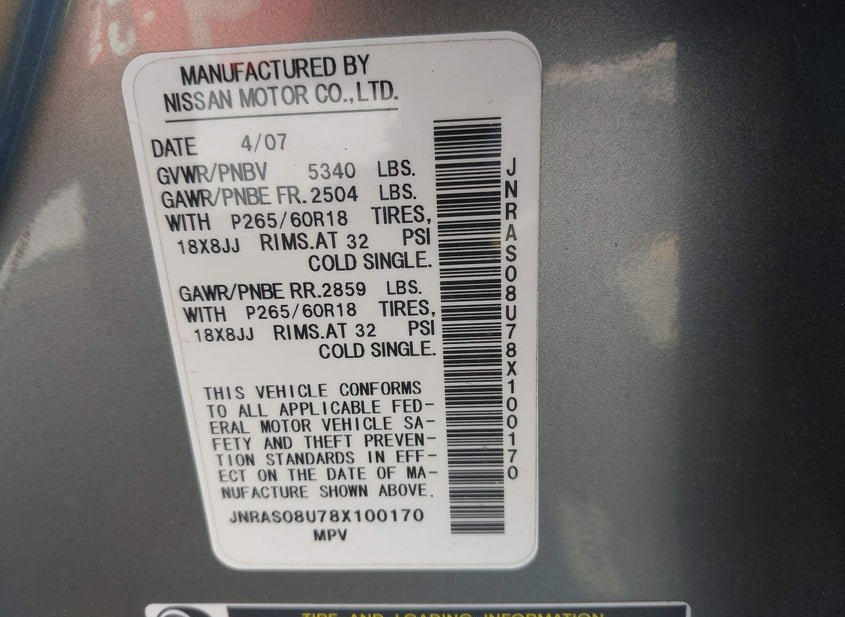 - VIN: JNRAS08U78X100170