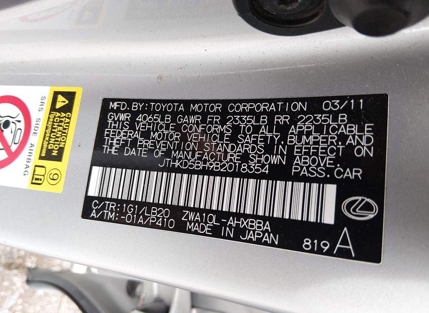 - VIN: JTHKD5BH9B2018354