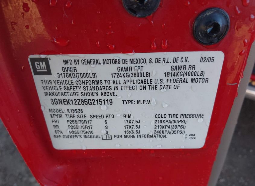 - VIN: 3GNEK12Z85G215119