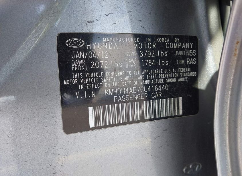 - VIN: KMHDH4AE7CU416440