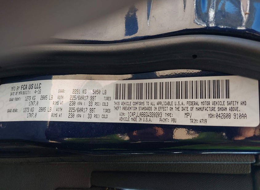 - VIN: 1C4PJLAB6GW320203