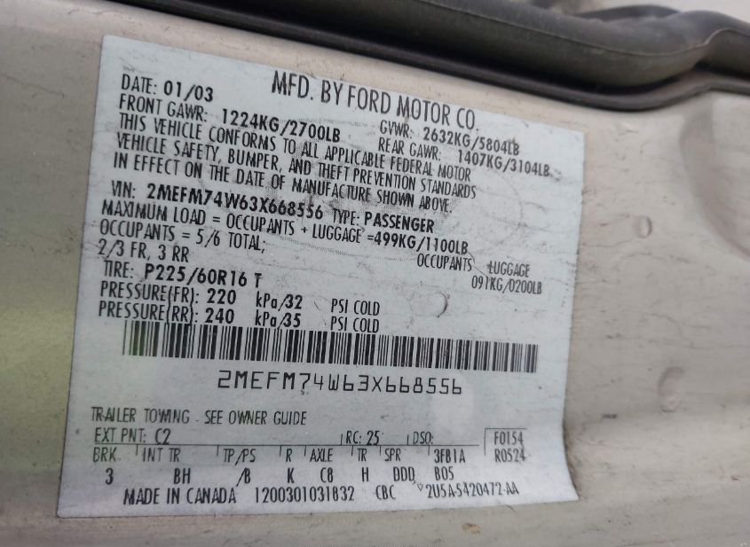 - VIN: 2MEFM74W63X668556