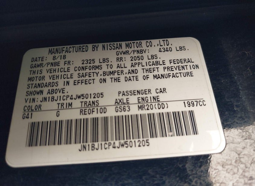 - VIN: JN1BJ1CP4JW501205