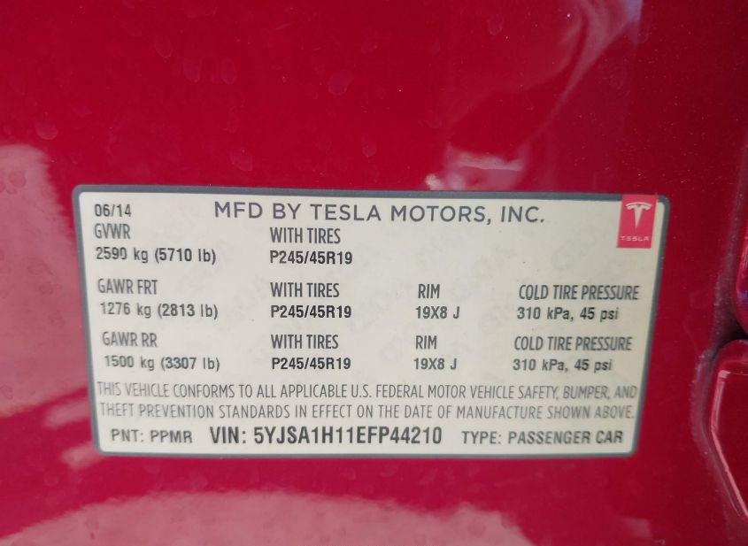 - VIN: 5YJSA1H11EFP44210