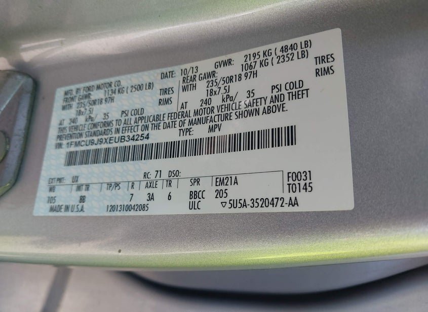 - VIN: 1FMCU9J9XEUB34254