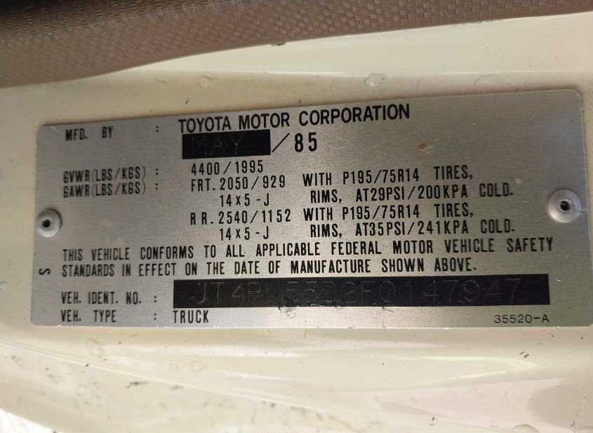 - VIN: JT4RN55D2F0147947