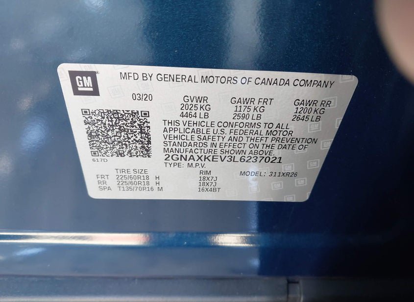 - VIN: 2GNAXKEV3L6237021