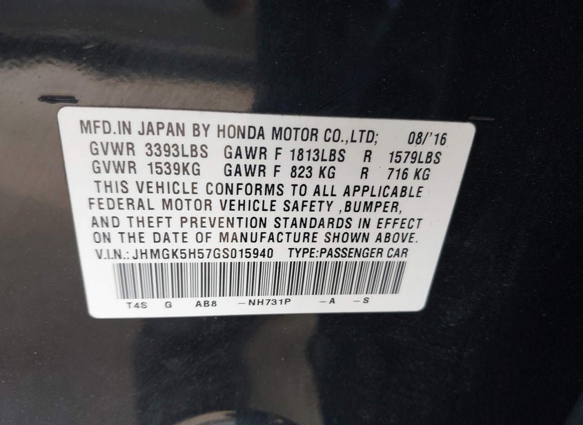 - VIN: JHMGK5H57GS015940