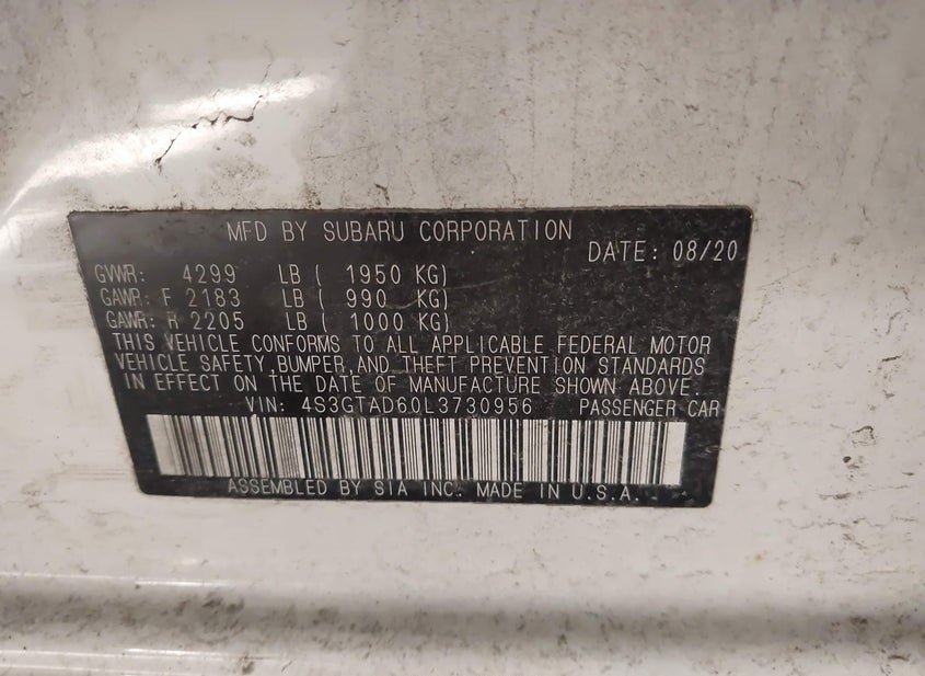 - VIN: 4S3GTAD60L3730956