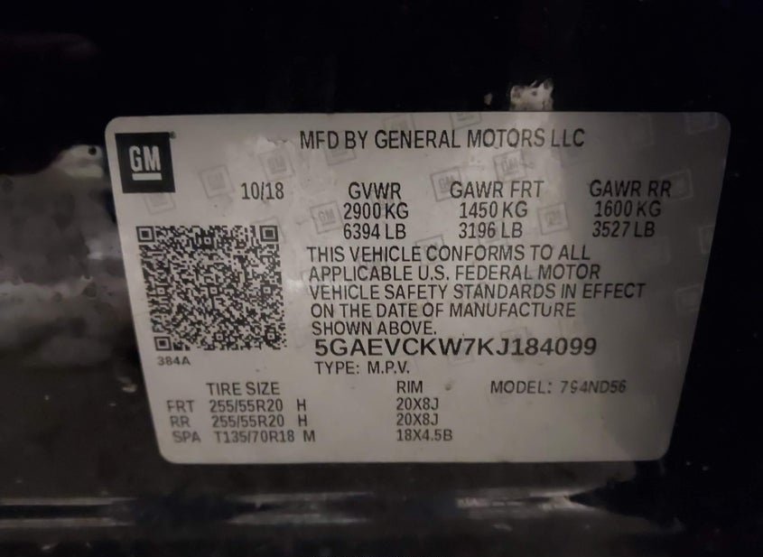 - VIN: 5GAEVCKW7KJ184099