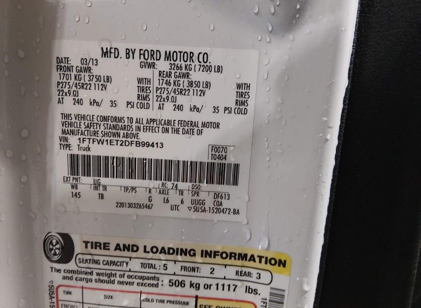 - VIN: 1FTFW1ET2DFB99413