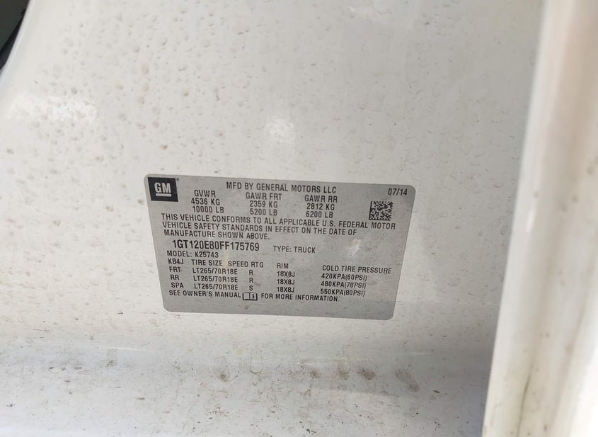 - VIN: 1GT120E80FF175769