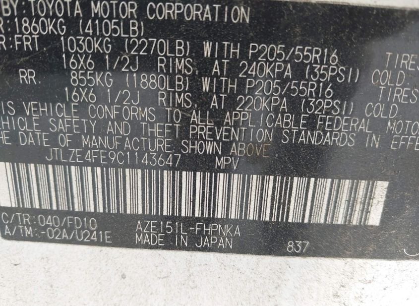 - VIN: JTLZE4FE9C1143647