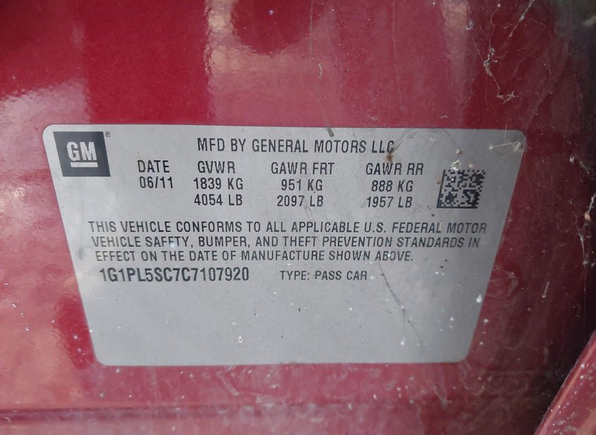 - VIN: 1G1PL5SC7C7107920