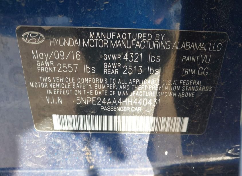- VIN: 5NPE24AA4HH440431