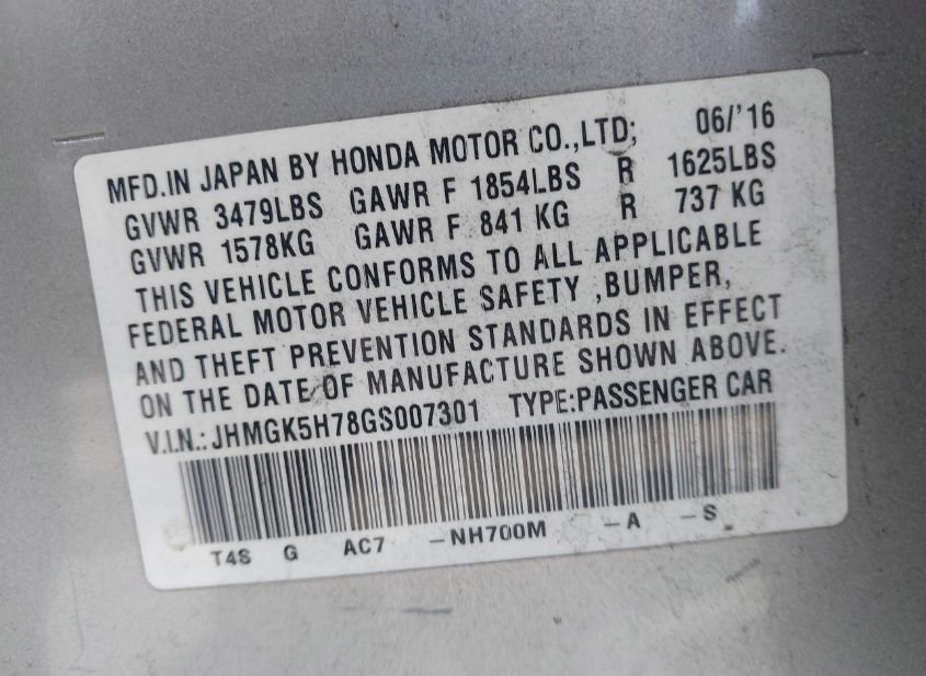 - VIN: JHMGK5H78GS007301