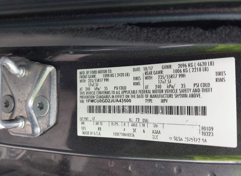 - VIN: 1FMCU0GD2JUA43500