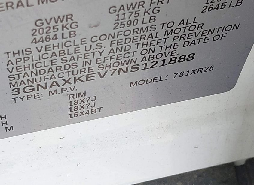 - VIN: 3GNAXKEV7NS121888