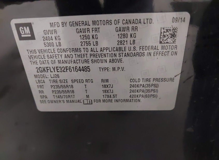 - VIN: 2GKFLYE32F6164485