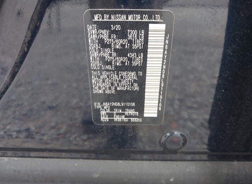 - VIN: JN8AY2ND8L9110108