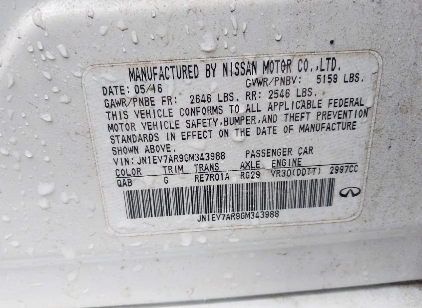- Название лота: 2016 INFINITI Q50 3.0T PREMIUM