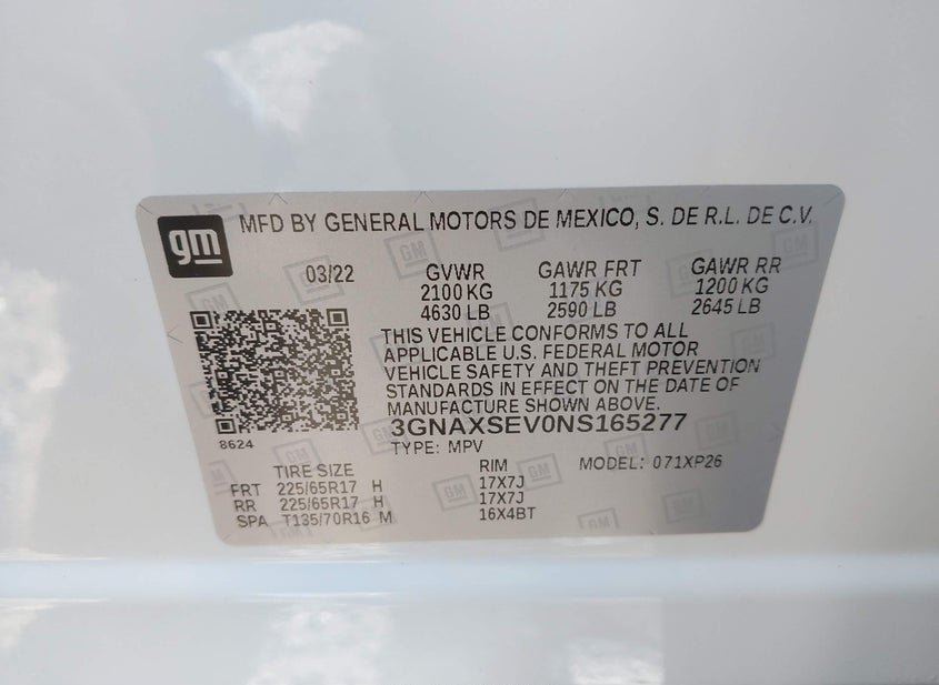 - VIN: 3GNAXSEV0NS165277