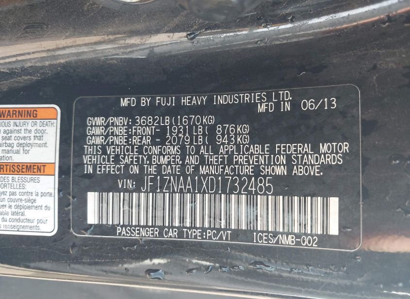 - VIN: JF1ZNAA1XD1732485