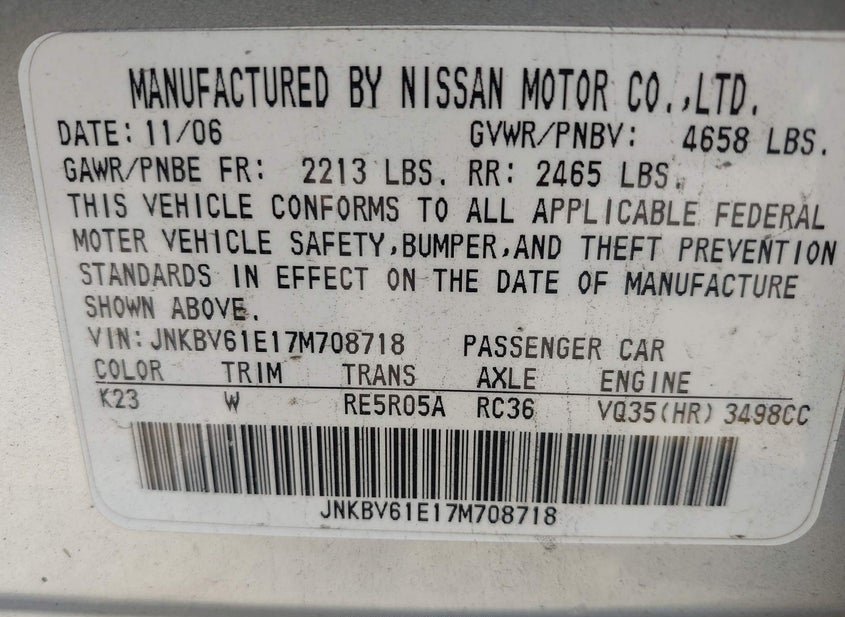 - Название лота: 2007 INFINITI G35 JOURNEY