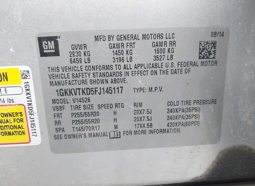 - VIN: 1GKKVTKD5FJ145117