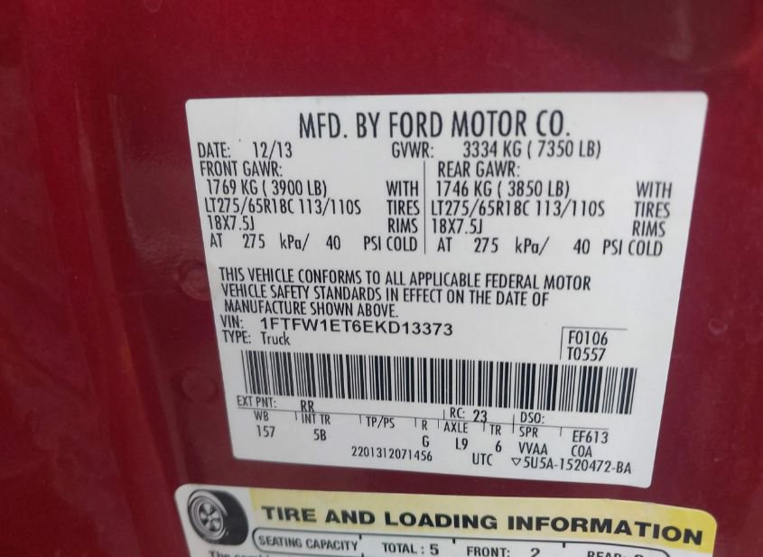 - VIN: 1FTFW1ET6EKD13373