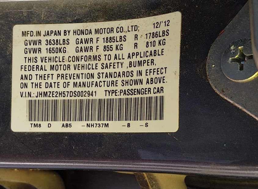 - VIN: JHMZE2H57DS002941