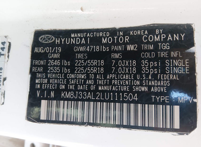 - VIN: KM8J33AL2LU111504