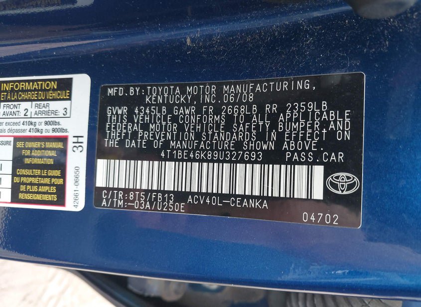 - VIN: 4T1BE46K89U327693