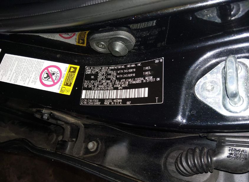 - VIN: 5TDBZRFH7KS918005