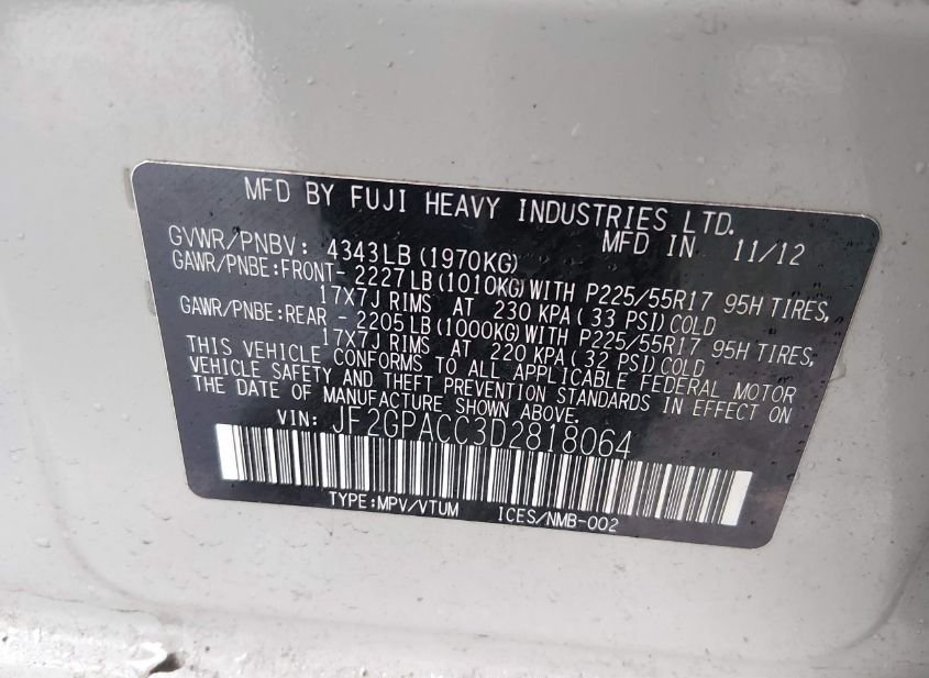 - VIN: JF2GPACC3D2818064