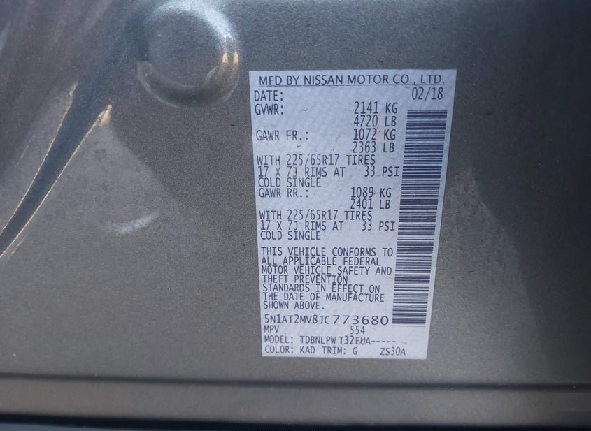 - Название лота: 2018 NISSAN ROGUE S