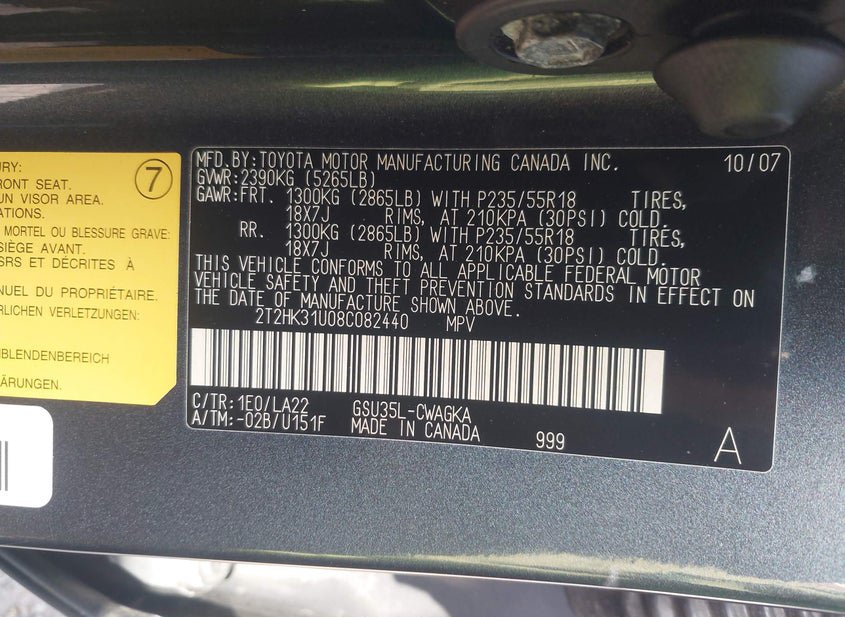 - VIN: 2T2HK31U08C082440