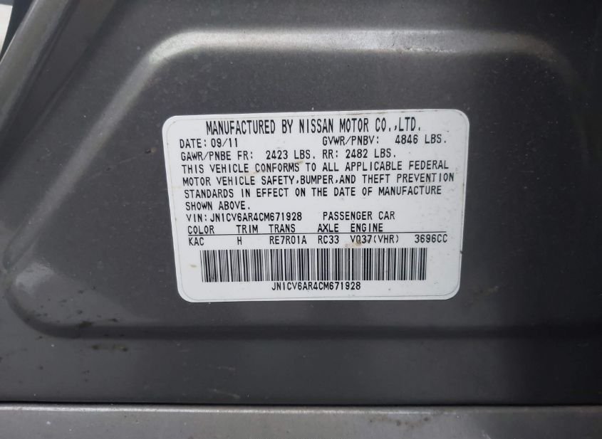 - VIN: JN1CV6AR4CM671928