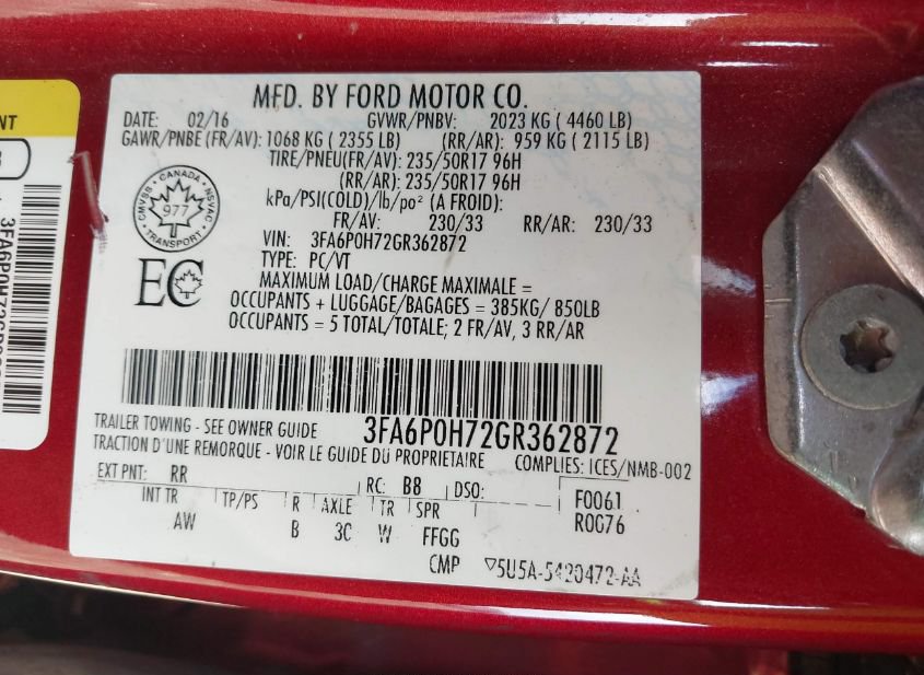 - VIN: 3FA6P0H72GR362872