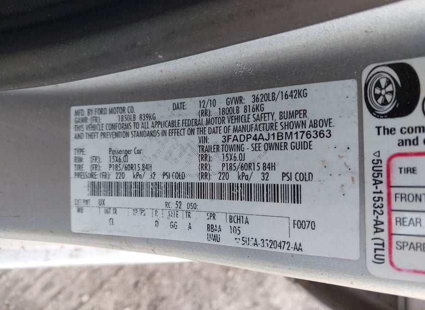 - VIN: 3FADP4AJ1BM176363