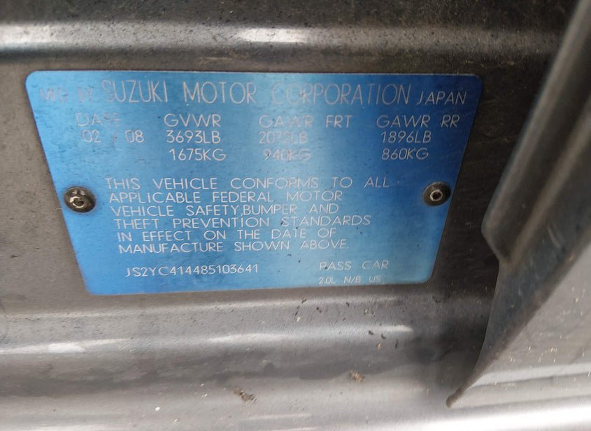 - VIN: JS2YC414485103641