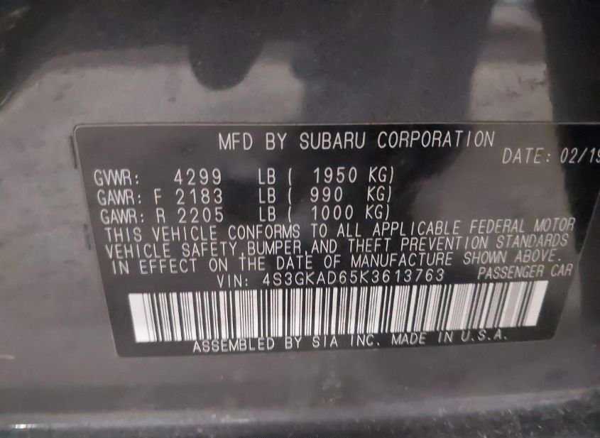 - VIN: 4S3GKAD65K3613763