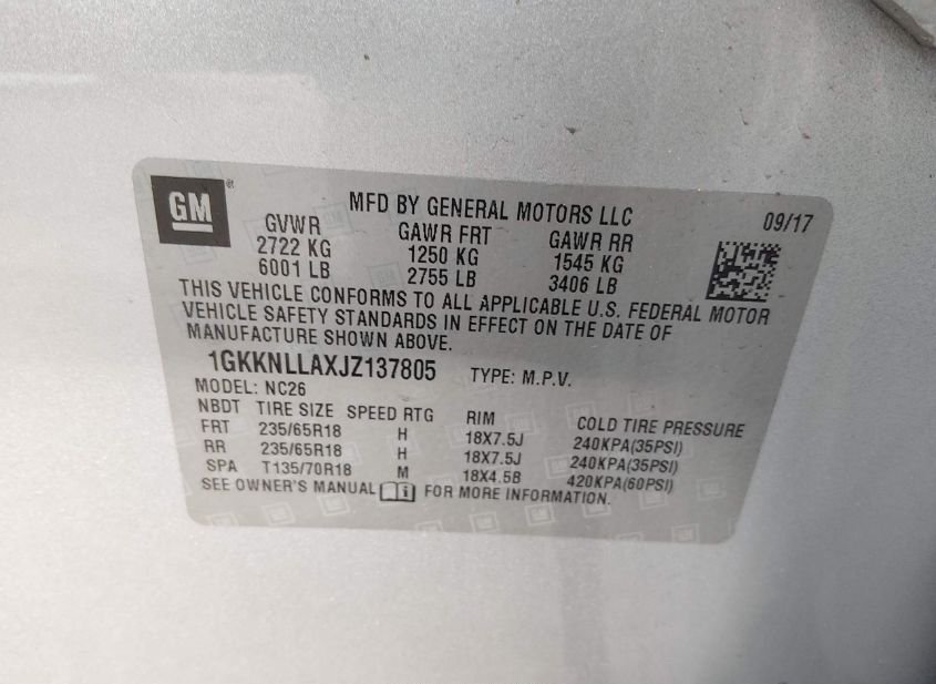 - VIN: 1GKKNLLAXJZ137805