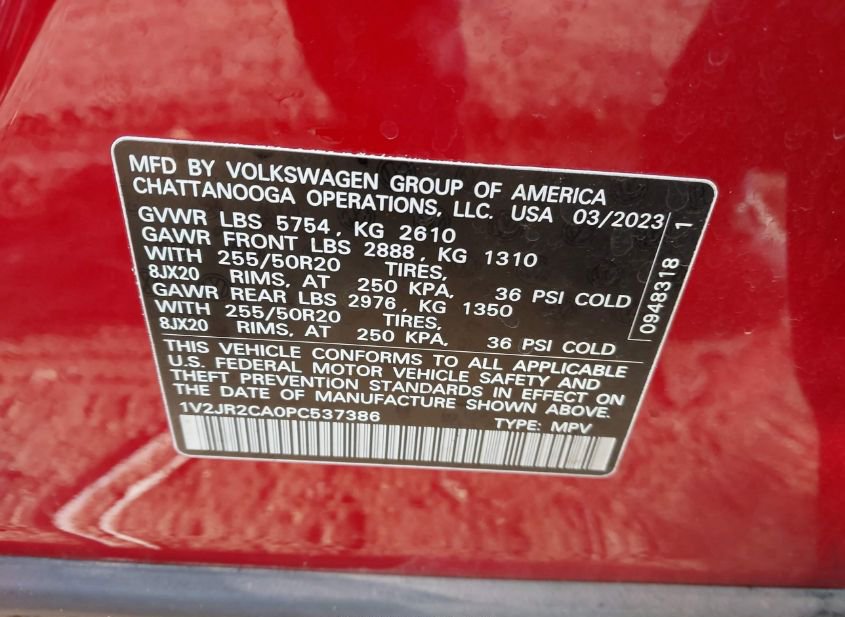 - VIN: 1V2JR2CA0PC537386