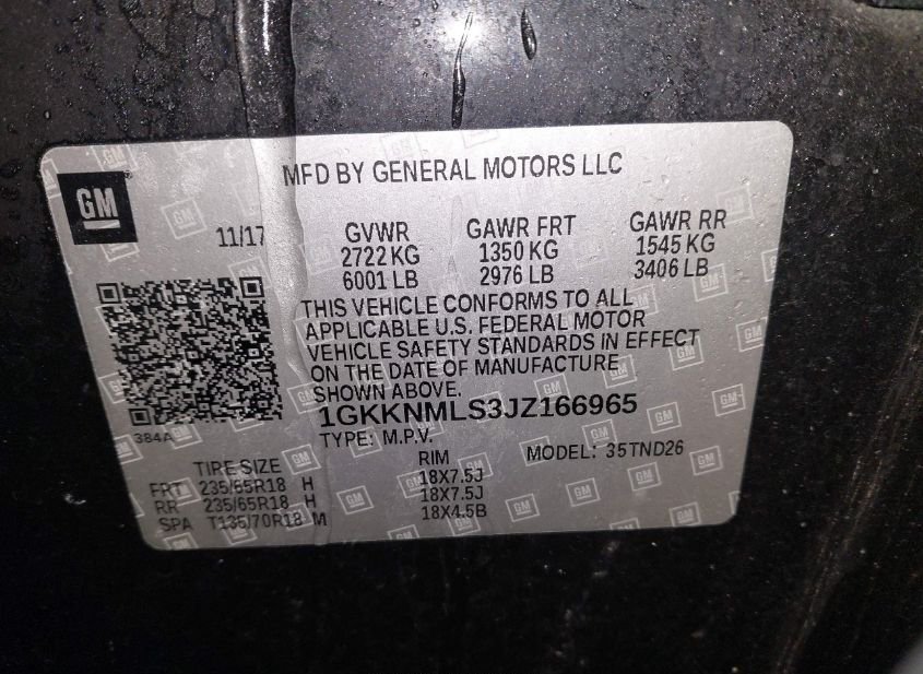 - VIN: 1GKKNMLS3JZ166965