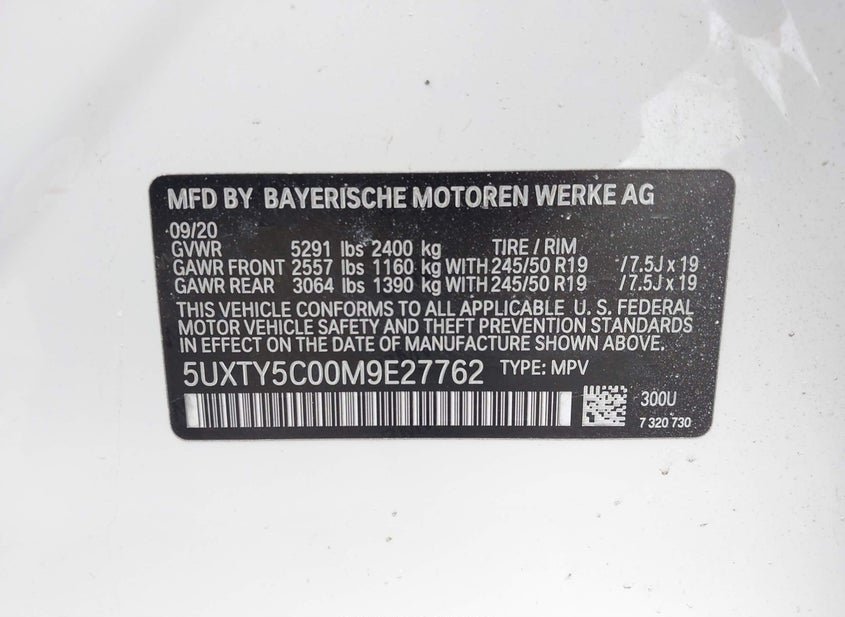 - VIN: 5UXTY5C00M9E27762